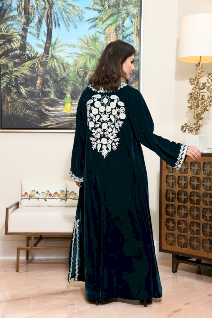 Elegant embroidered Jalabyia from velvet fabric