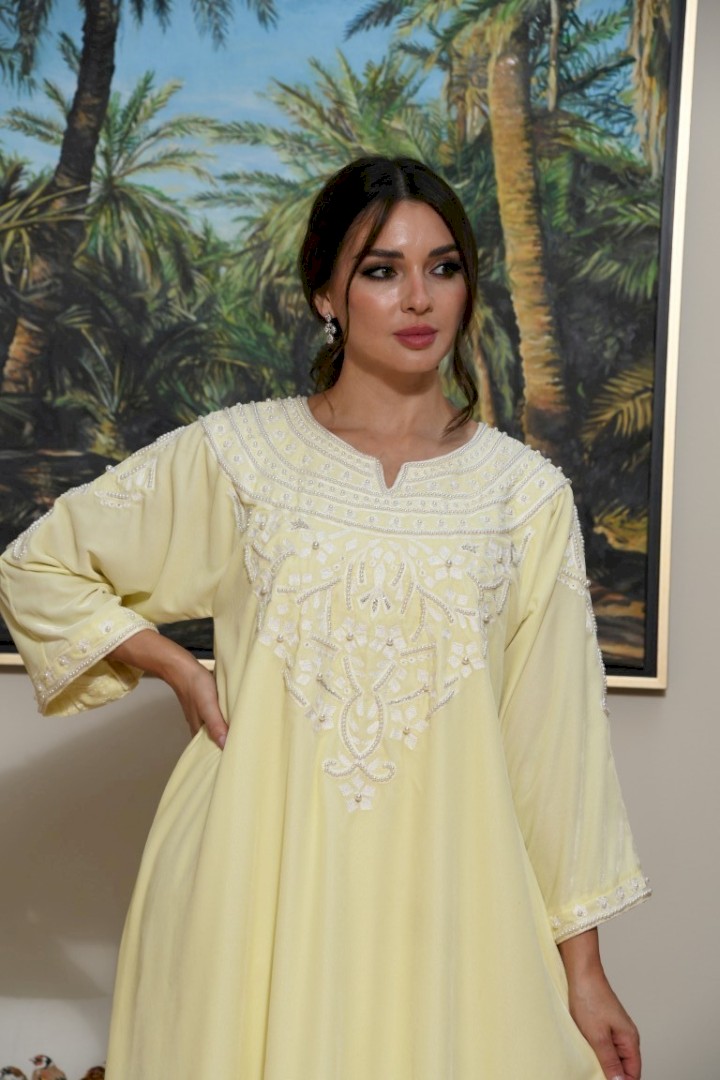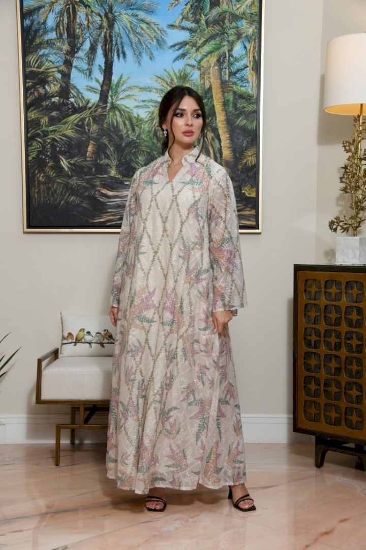 Elegant embroidered velvet jalabyia, with luxury fabric designed by designer.